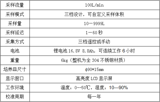 仪器采用电脑板控制,低噪音泵采样,因此操作简单、性能稳定。采集头采用316L不锈钢制造,可适合各种方式消毒。